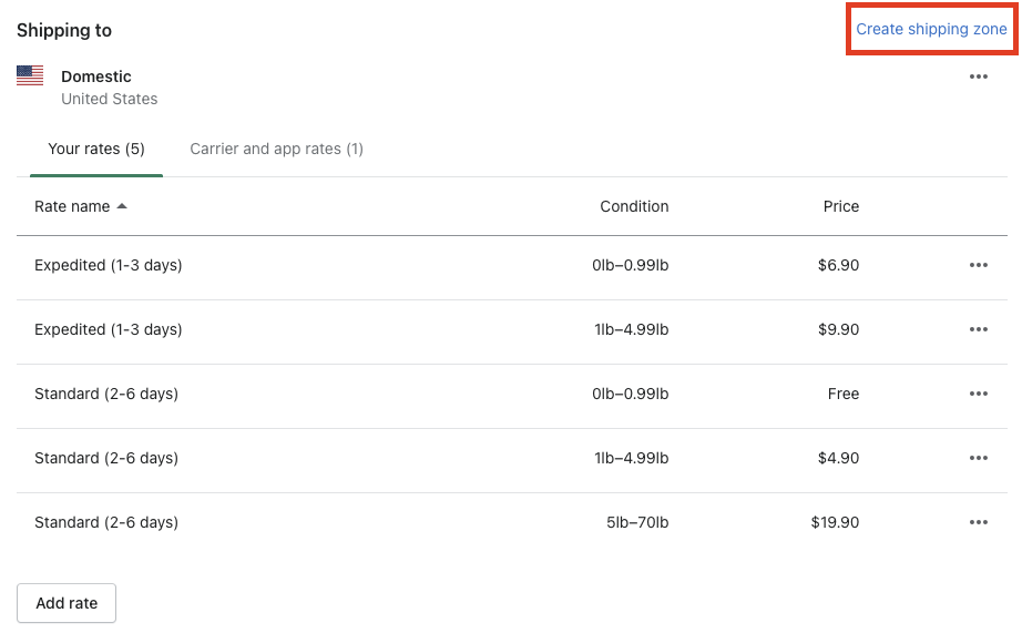 *注:如果使用Deliverr履約某些地區(qū)的訂單,而其它地區(qū)使用別的履約方式,您需要確保在Shopify中啟用“Multiple Locations”(多地點),并為每個地點添加單獨的費率。
