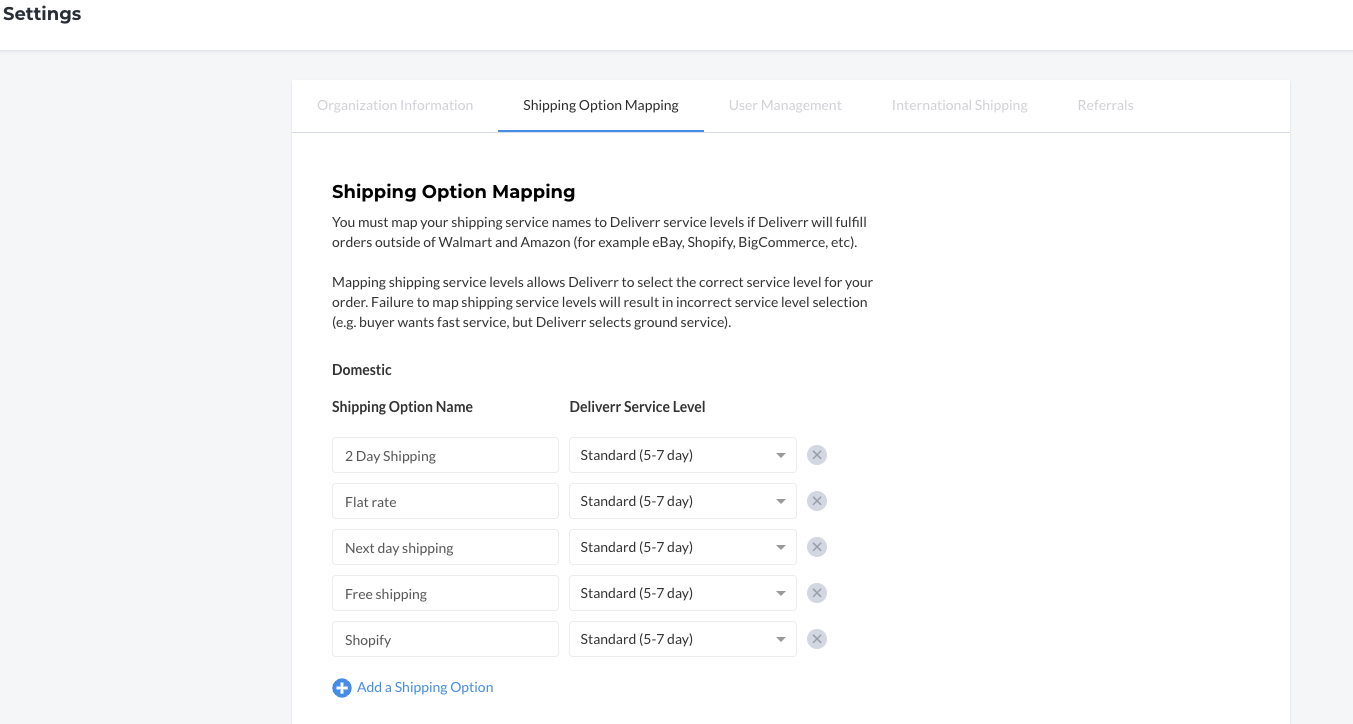 5. 雖然國際運輸?shù)臅r間比國內(nèi)標(biāo)準(zhǔn)運輸長,但Shopify的"Shipping Option Mapping"(對應(yīng)運輸選項)可以保持為“Standard (5-7 day)”(標(biāo)準(zhǔn)(5-7天))。